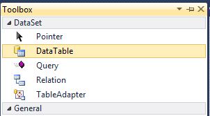 Select DataTable from Toolbox and drag and drop to the dataset design editor,it is look like this